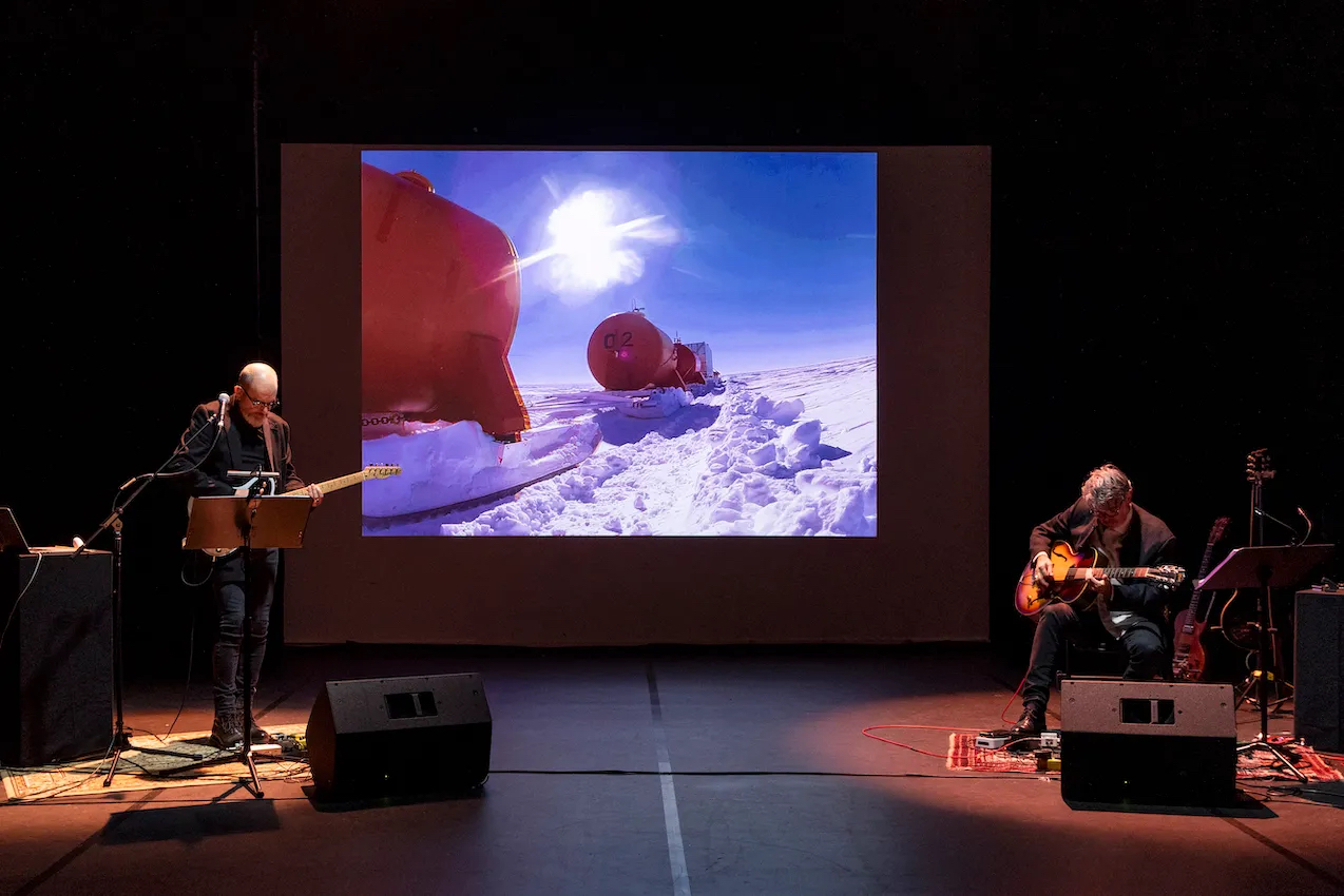 Deux guitares de blues somptueux, une voix, des images d’archives de 1903 et des images inédite de raids d’exploration contemporains, pour un voyage atmosphérique, historique et scientifique en Antarctique.